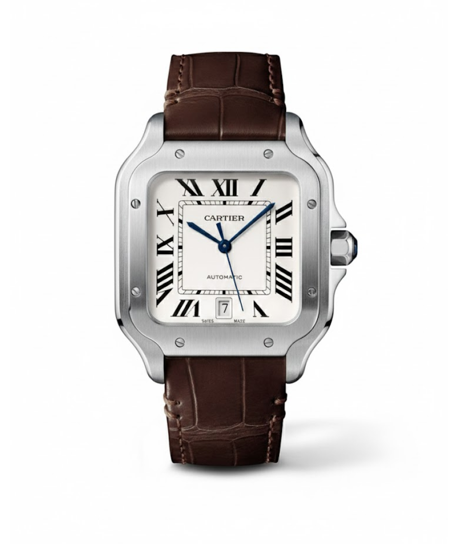 Cartier de Santos Leather Strap White Dail